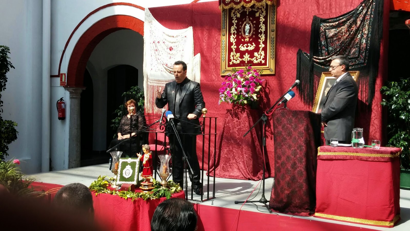Desde aqui le felicitamos por el gran pregón que ha realizado.En el pregón Juanma a recordado sus vivencias vista de" abajo" por los costaleros y como capataz ... el ha sido todo en su hdad hasta pertiguero ,,